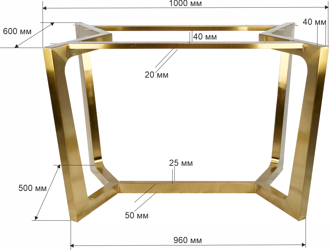 Элегантное подстолье из нержавеющей стали с покрытием ""под золото"" (нитрид титана) размером 100×60 см (верх) и 96×50 см (низ) создает роскошную основу для столешниц 140×90 см. Изысканный золотой оттенок и прочная конструкция подчеркнут статус вашего заведения.