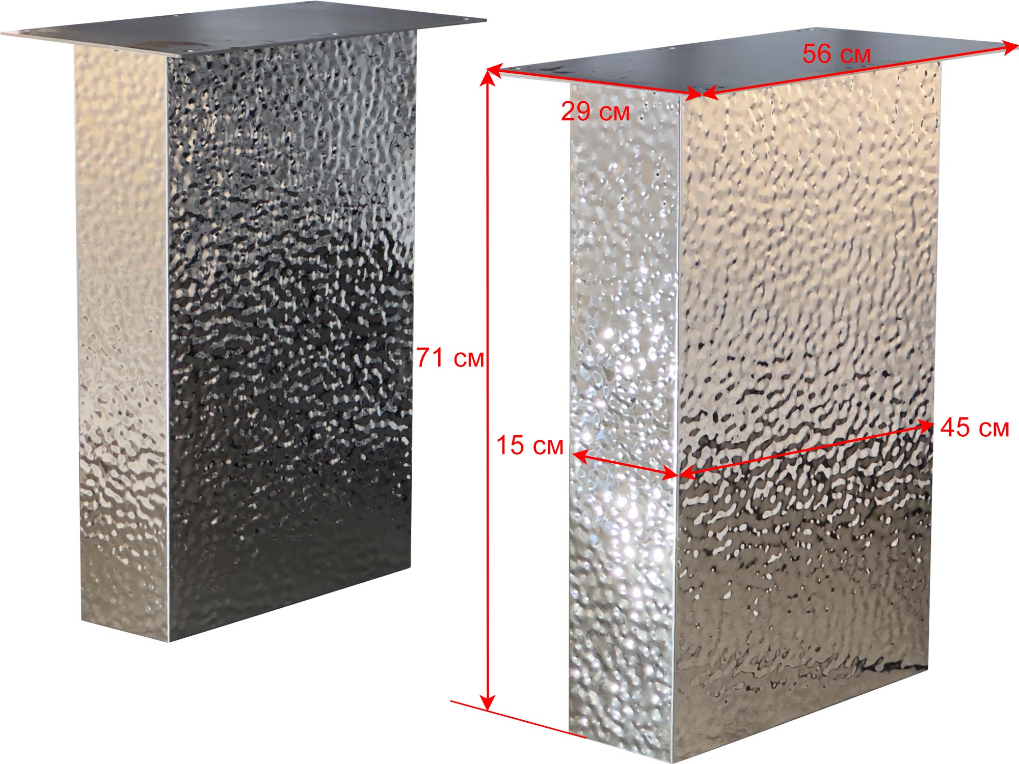 Подстолье из нержавеющей стали 2134EM Глубина: 15 см Длина: 45 см Высота: 72 см Все размеры указаны для одной позиции. В упаковке две штуки. Возможные варианты цвета: 2134EM - лаковое покрытие, цвет "серебро" 2135 ЕМ - лаковое покрытие, цвет - "под золото" (нитрид титана) Рекомендуемый размер столешницы: 2000х1000 Заказать подстолье для своего проекта в городе Нижнем Новгороде, вы можете связавшись с нами любым удобным для вас способом - по телефону, по электронной почте или заполнив форму обратной связи на нашем сайте.