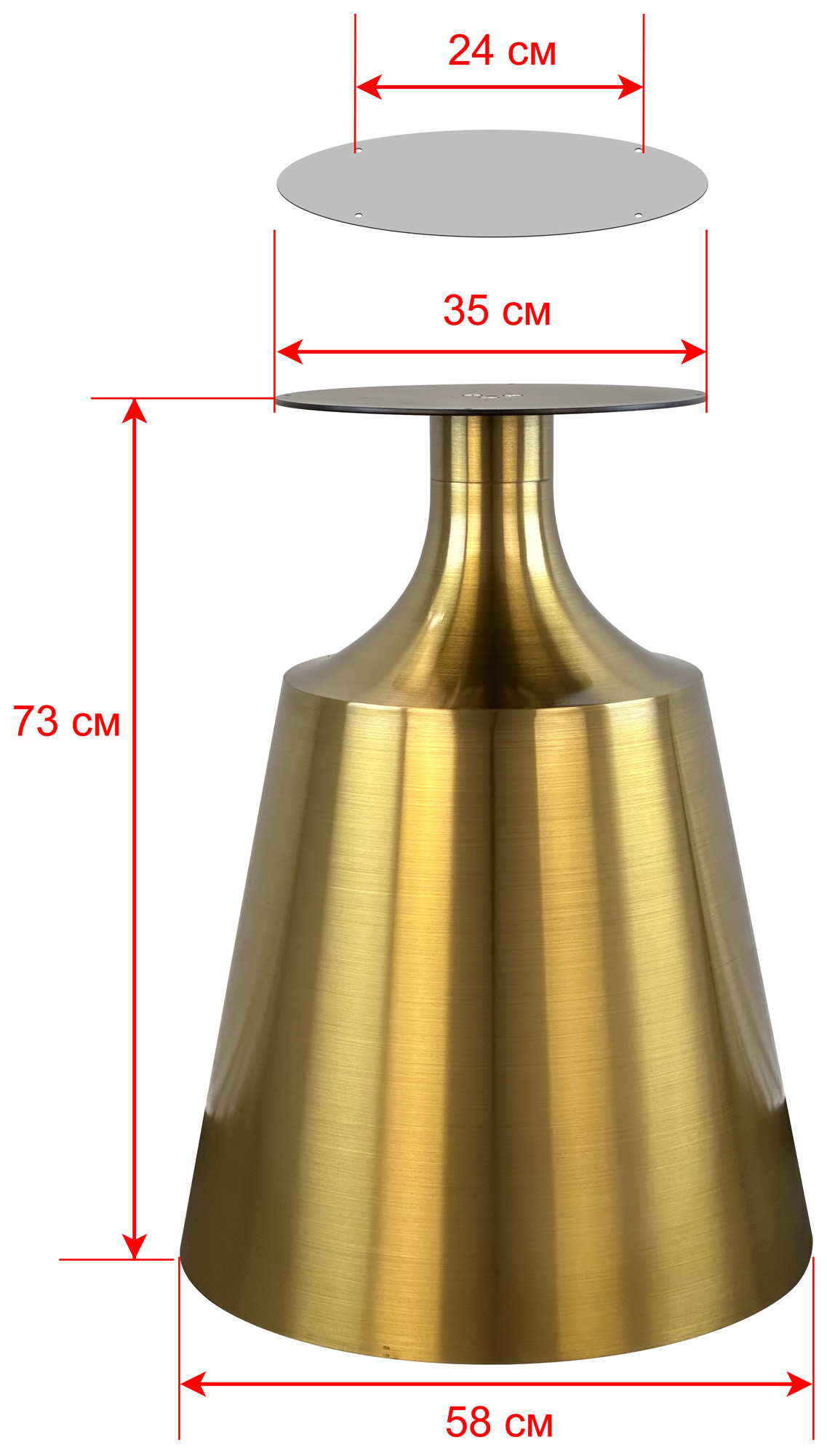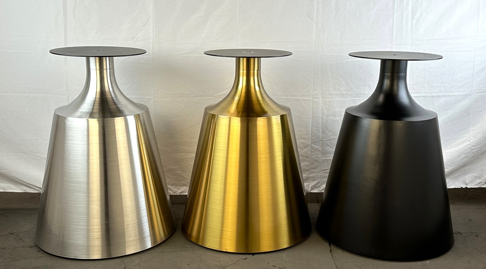 Надежное подстолье из нержавеющей стали (Ø30 см) обеспечивает устойчивость столешницам Ø180 см. Доступно в трех вариантах исполнения: под золото черное порошковое покрытие и полированное ""серебро"". Прочная конструкция гарантирует долгий срок службы.